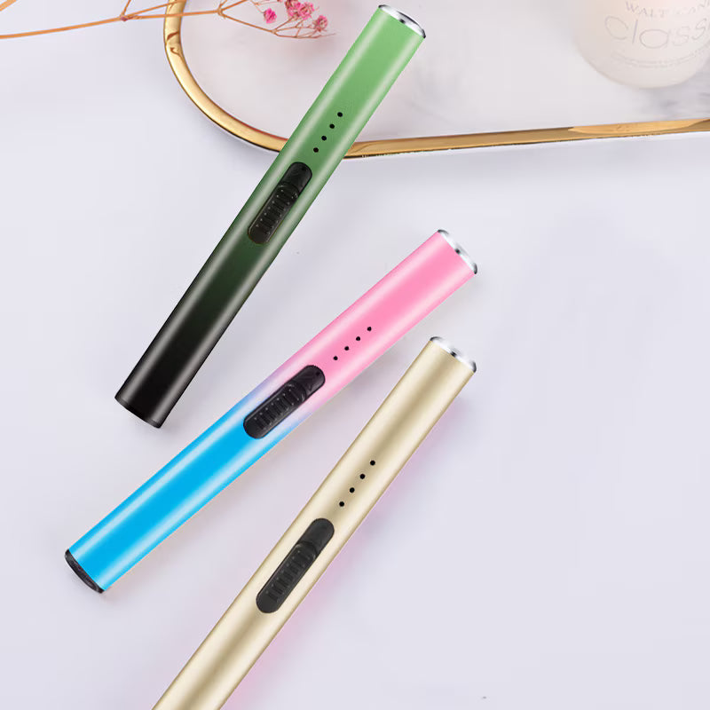 It uses an electric arc instead of a flame to quickly and safely light candles or other items.